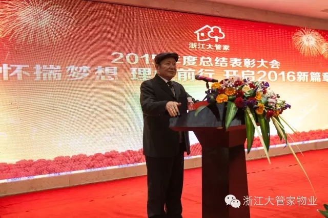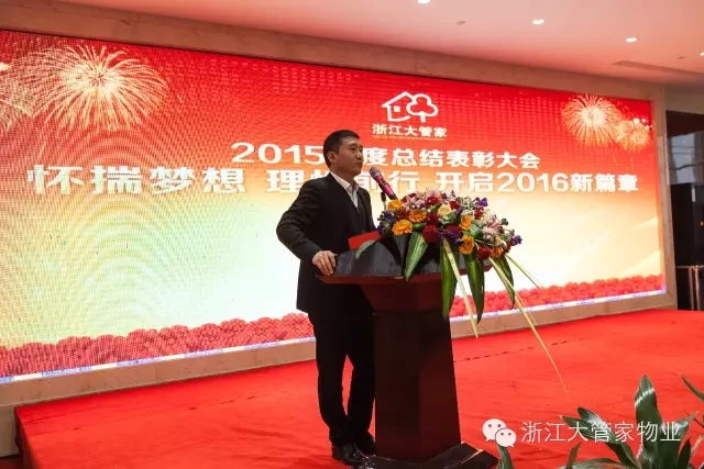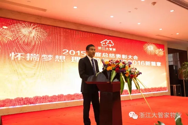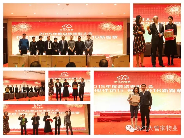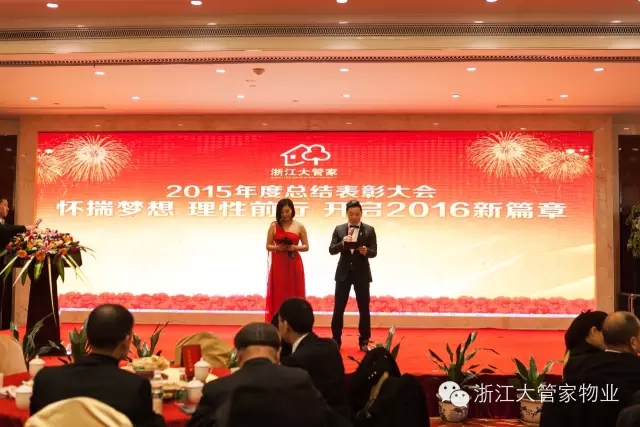 2016年1月22日,浙江大管家物业2015年度总结表彰大会在太阳厅隆重举行。公司领导、各分公司负责人、各项目经理、内勤、优秀员工代表、参加文艺汇演的员工等共计350余人参加。同时,万科物业浙江地区业务总经理及行业协会秘书长等也亲临本次年会。