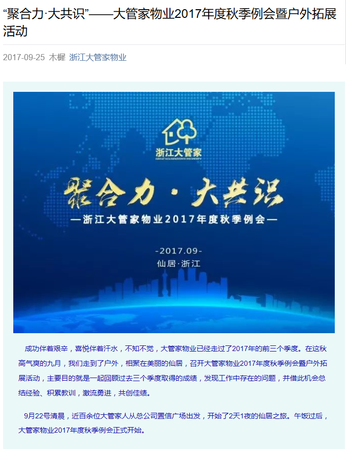 “聚合力·大共识”——大管家物业2017年度秋季例会暨户外拓展活动