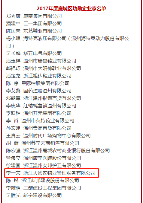 今日上午,温州鹿城发布公众号公布了2017年度“
