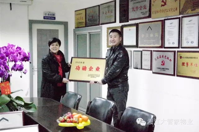 昨天下午,鹿城区人大副主任陈洁和区人大常务会专职委员王建波到大管家总部送上2015年度“功勋企业”的牌匾,这是全体大管家人的荣誉。