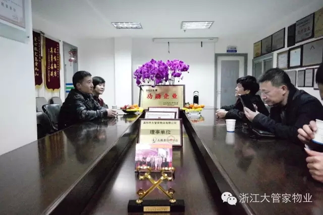 陈洁副主任和公司董事长李一文进行了亲切交谈,她详细地了解了大管家的发展情况,李董向陈主任介绍了公司2016年的发展动态,并详细介绍公司和万科物业签署了战略合作伙伴关系,今后,大管家将在温州推进万科睿服务,用先进的现代智能科技技术的管理方式开展物业管理服务,及时满足业主不断的,新的服务需求。陈洁副主任还询问了物业行业存在的问题和困难,李一文董事长作为为温州市物业行业协会的会长,也谈了目前物业行业实际存在的困难,物业法律法规的不健全使得物业公司在开展管理工作时困难重重,物业公司的发展也受到了诸多的限制。陈洁副主任表示,物业行业是低利润的服务行业,政府应该给予高度扶持,同时她作为鹿城区法学会的会长也会竭力在法律法规方面的修订,从第三方的角度向政府有关部门提出专业建议,能尽量给予物业行业一定的帮助。