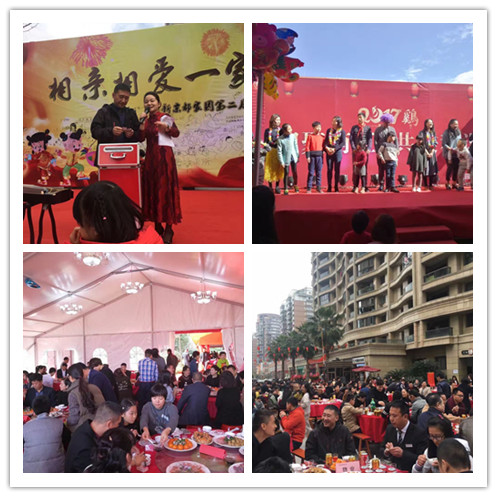 共建和谐邻里——过年,说说家常话,叙叙思念情。归家的业主一扫往日的疲惫,等待他们的是邻里们、物业人们不计付出、精心准备的新年聚会。